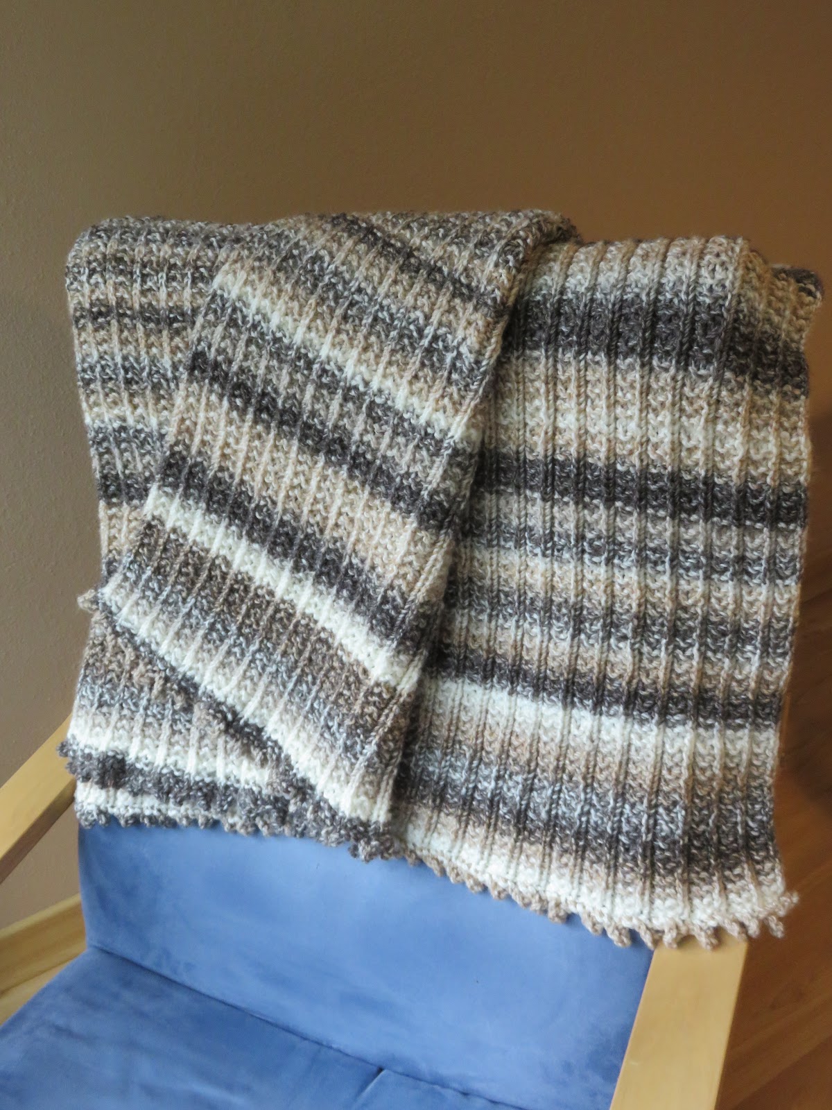 One more prayer shawl. This one was made in memory of my friend Nancy's husband, Dan. It will be donated to Hospice. Again, it's my favorite One Row pattern using Premier's Puzzle yarn. It looks like the color is called Crossword.